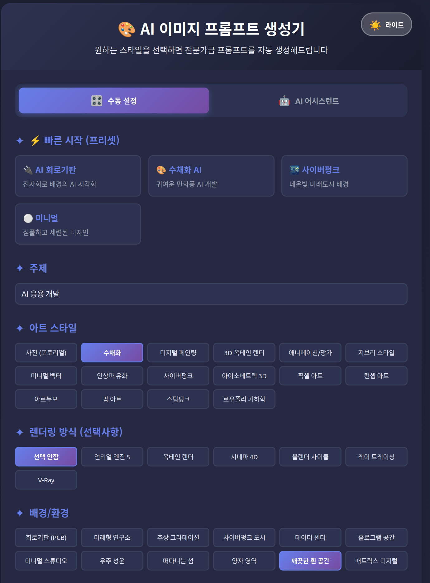 - 자동 저장 - 프롬프트 생성 시 자동으로 히스토리에 추가